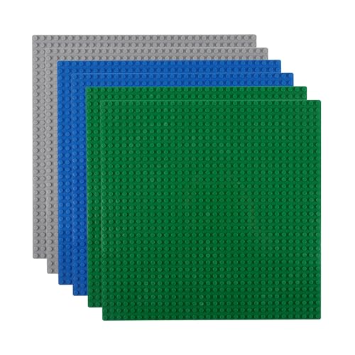 Reenwee 6 Packs Classic Baseplates, 10x10 inch with 32x32 Studs, Building Bricks Baseplate Compatible With Lego, Base Plates 10" x 10" Display Board, Green/Blue/Grey (6PCS Green*6)