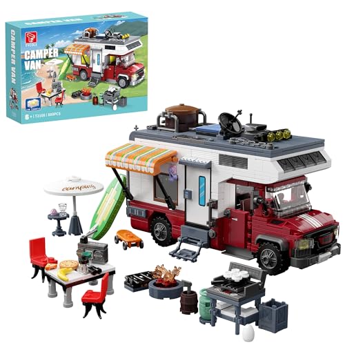 City Camper Van Building Block Set — 924 Piece Motorhome Bricks Kit, Summer Beach Vacation Camper Building Model, Adventure Vehicle Playset, Christmas Birthday Gift for Adults and Kids 6+