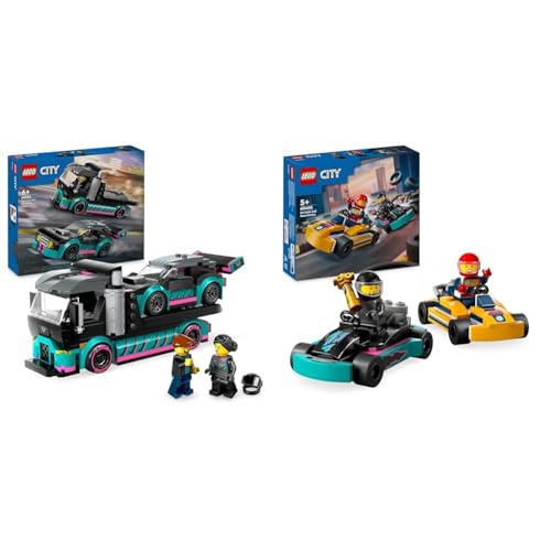 LEGO City Race Car and Car Carrier Truck Toy, Vehicle and Transporter Building Set & City Go-Karts and Race Drivers, Racing Vehicle Toy Playset for 5 Plus Year Old Boys