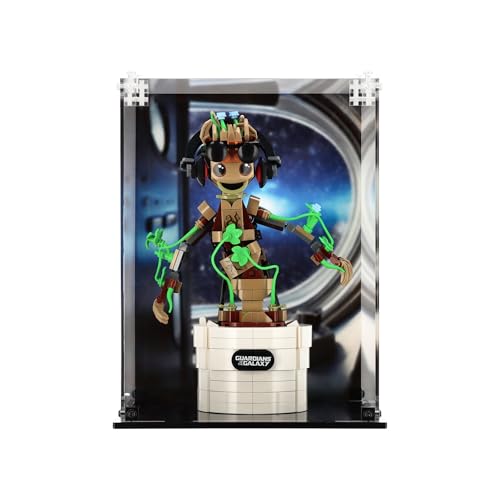 ICUANUTY Acrylic Display Case for Lego Marvel Dancing Groot 76297, Dust Protected Storage and Organize Display Box for Lego model, Size: 19x15x35 cm, (Only Display Box)