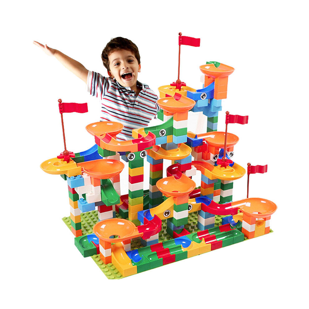 3in1 Marble Runs for Kids 4-8 Building Blocks/246Pcs Classic Big Blocks Toys Set Compatible with DUPLO Lego Sets/Marble Maze Race Track/Montessori Lea