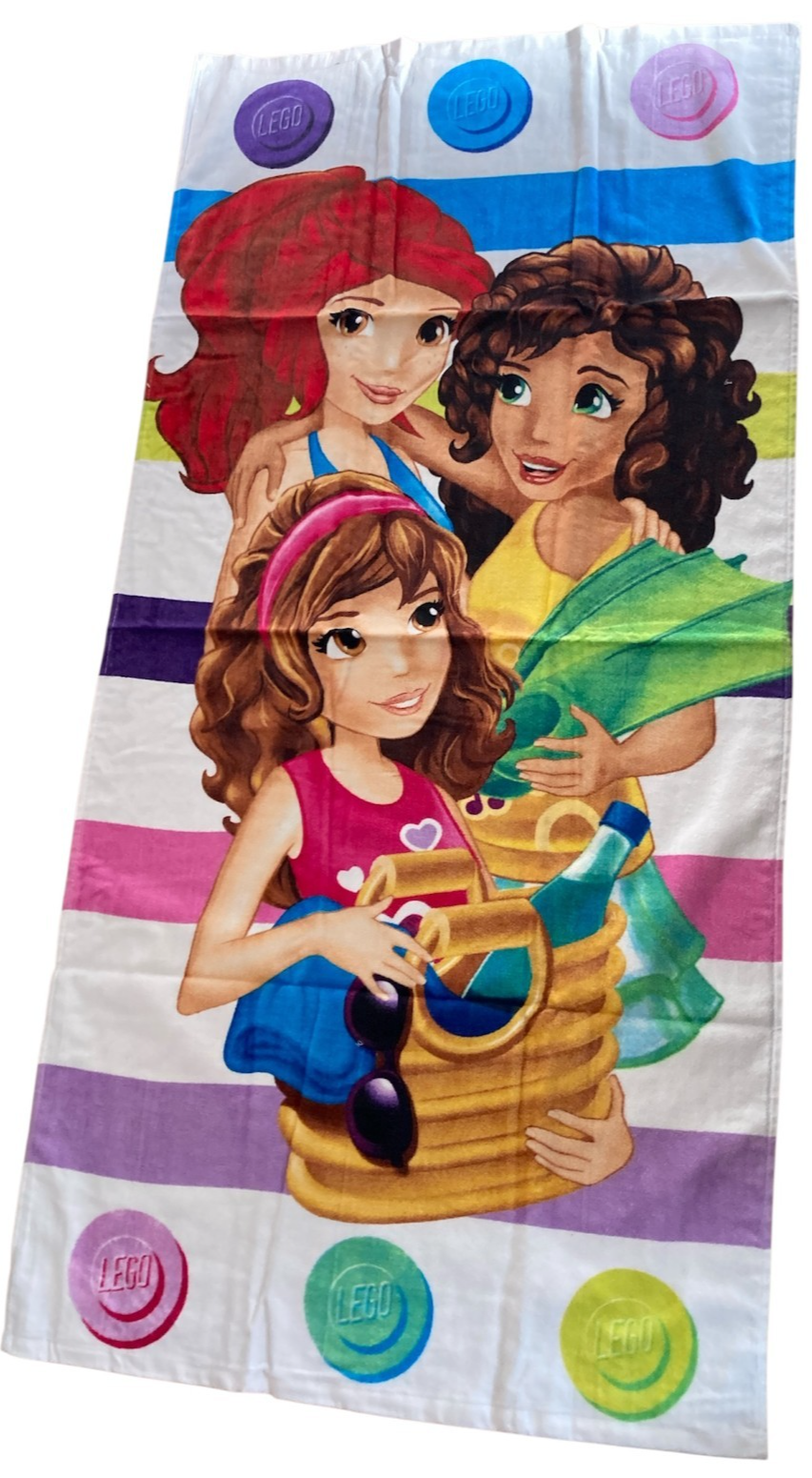 girls towel lego friends 100% cotton size 140cms x 70cms large bath towel beach