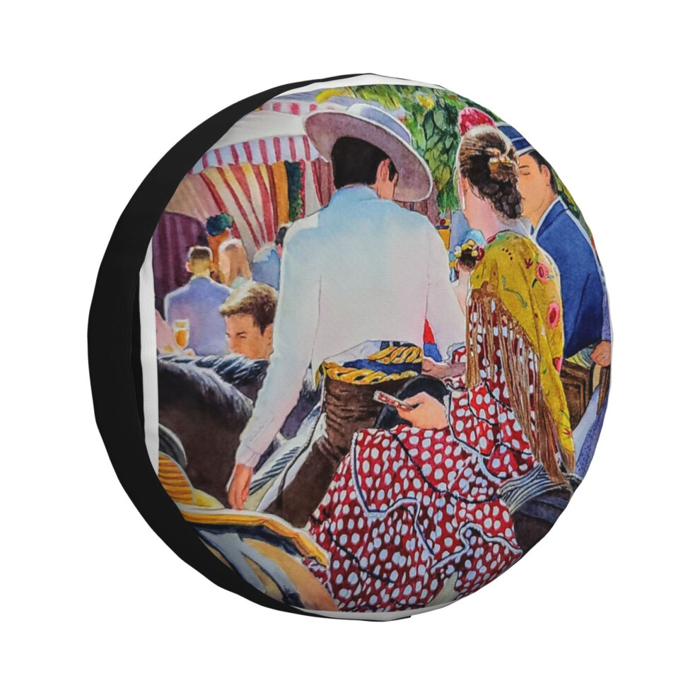 (Friends In Seville_929) Spare Tire Cover for RV Trailer, Waterproof Wheel Covers Protectors Camper Fit for Jeep Wrangler Rv SUV Van Truck Travel Vehi