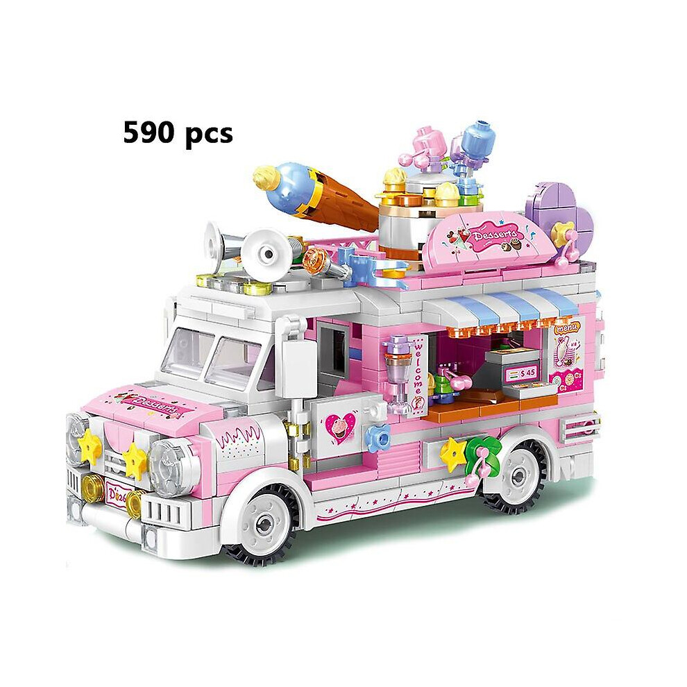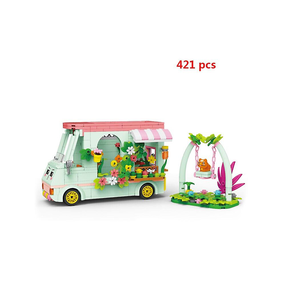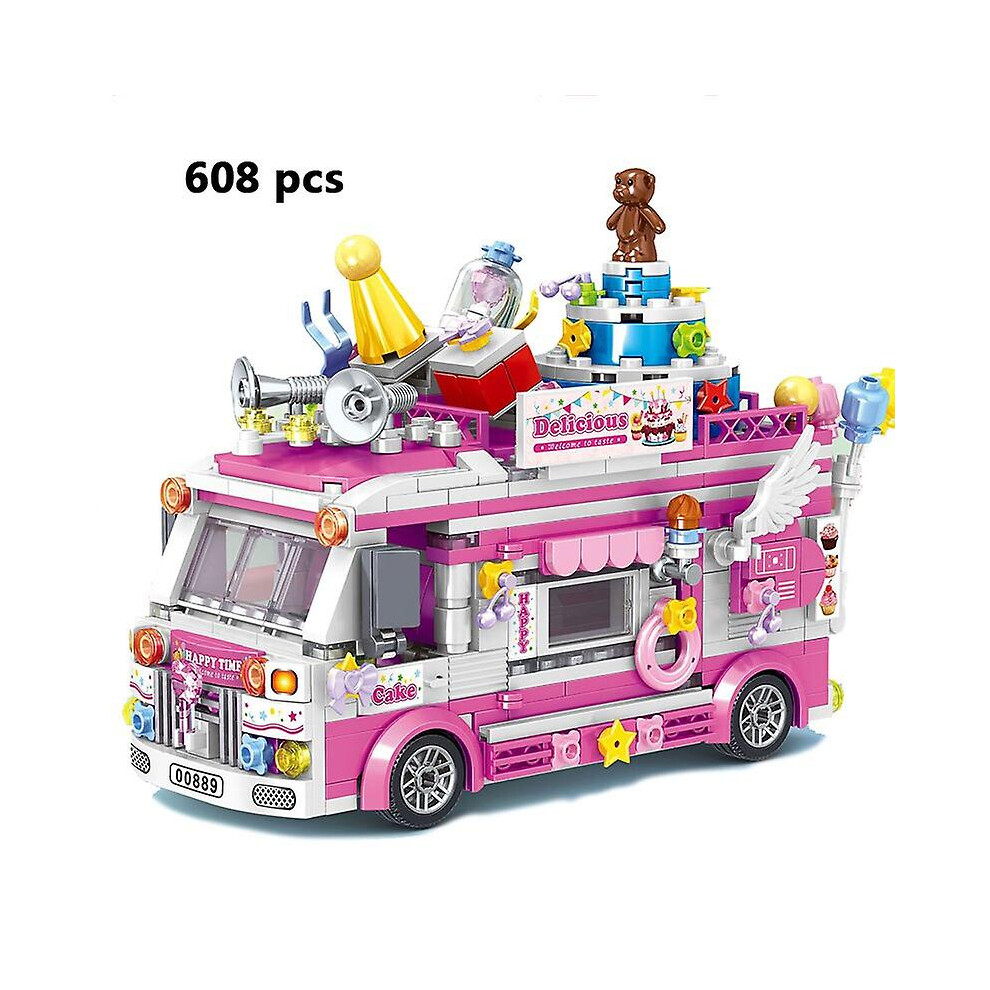 (00889 no box) Mini parts city outing bus compatible friends camper van camping car princess model building blocks sets bricks toys for girls