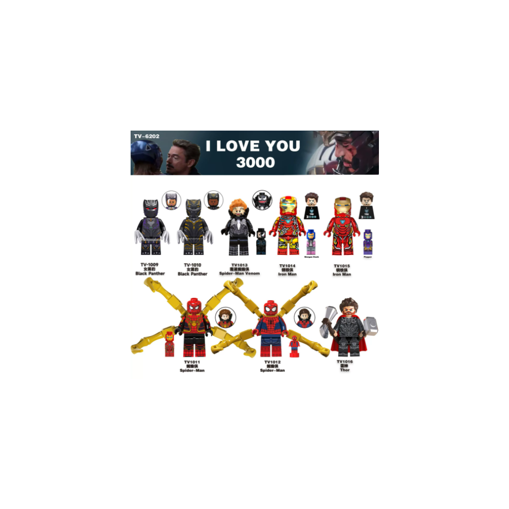 (Style B 8pcs) 16PCS Super English Female Panther Venom Spider Man Thor Iron Man Minifigures Toys Fit Lego