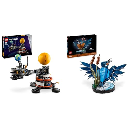 LEGO Technic Planet Earth and Moon in Orbit Model Building Set & Icons Kingfisher Bird Set, Model Building Kit for Adults