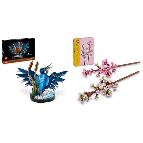 LEGO Icons Kingfisher Bird Set, Model Building Kit for Adults to Build with Water Setting Display Stand & Cherry Blossoms, Artificial Faux Flowers Set, Idea, Makes a Great Desk Decor Accessory