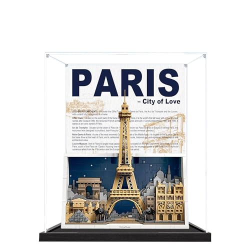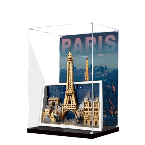 Acrylic Display Case for Lego 21064 Paris – City of Love Model, 3mm Dustproof Display Box, Display Case Compatible with Lego 21064(Model Not Included) (Background Black Base A)