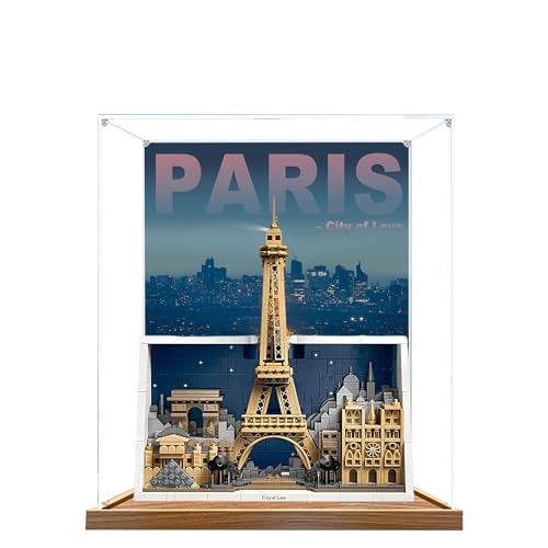 Acrylic Display Case for Lego 21064 Paris – City of Love Model, 3mm Dustproof Display Box, Display Case Compatible with Lego 21064(Model Not Included) (Background Wood Base B)