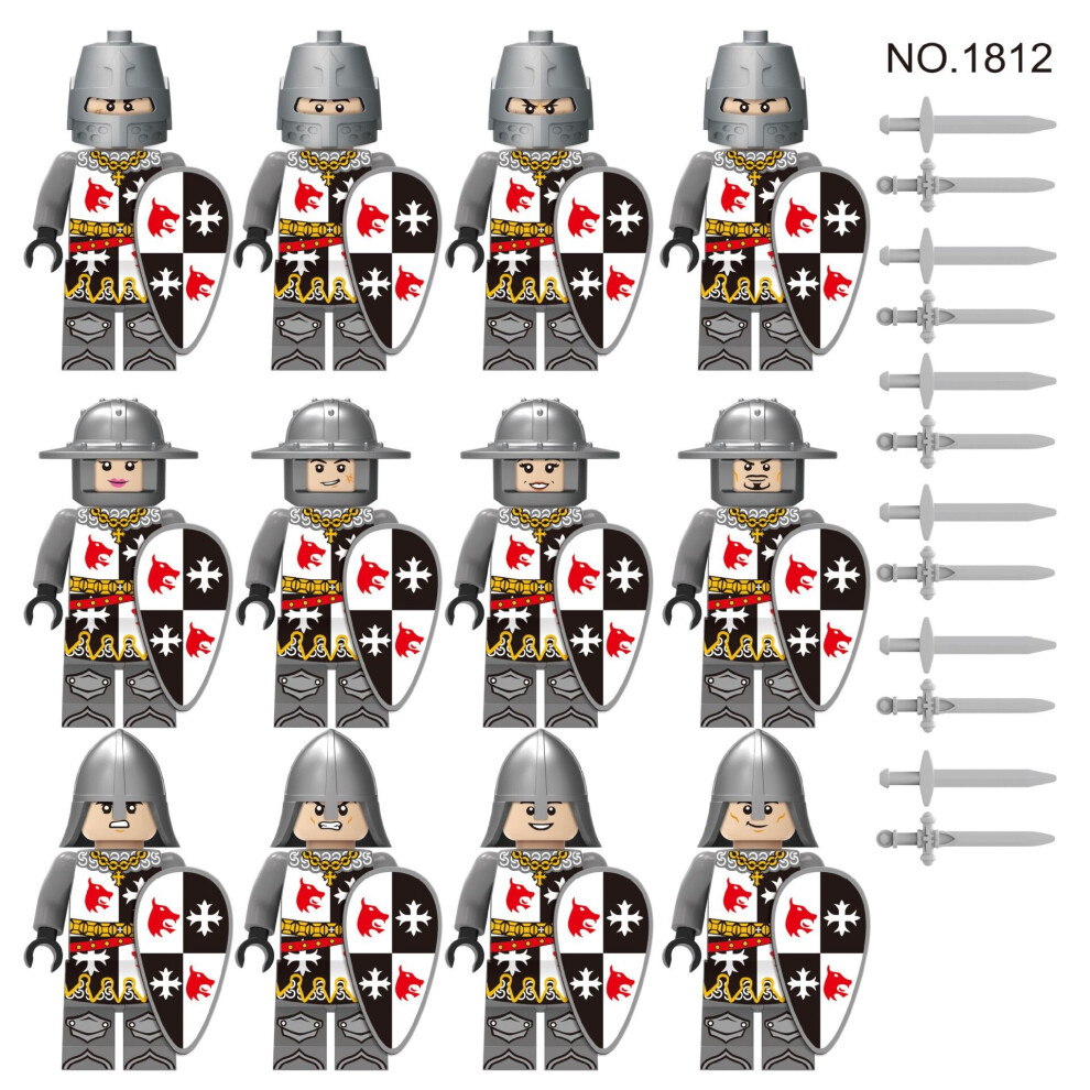 (Style E) 12pcs Medieval Soldier Building Block Figure Toy Kids Toy Gift Fit Lego