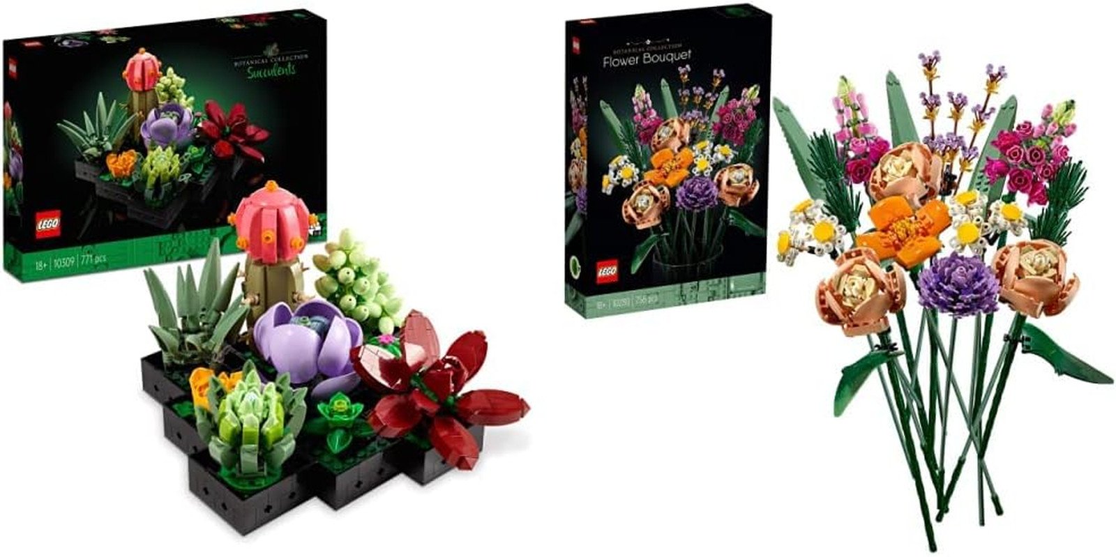 LEGO 10309 Icons Succulents Artificial Plants Set for Adults & 10280 Flower Bouq
