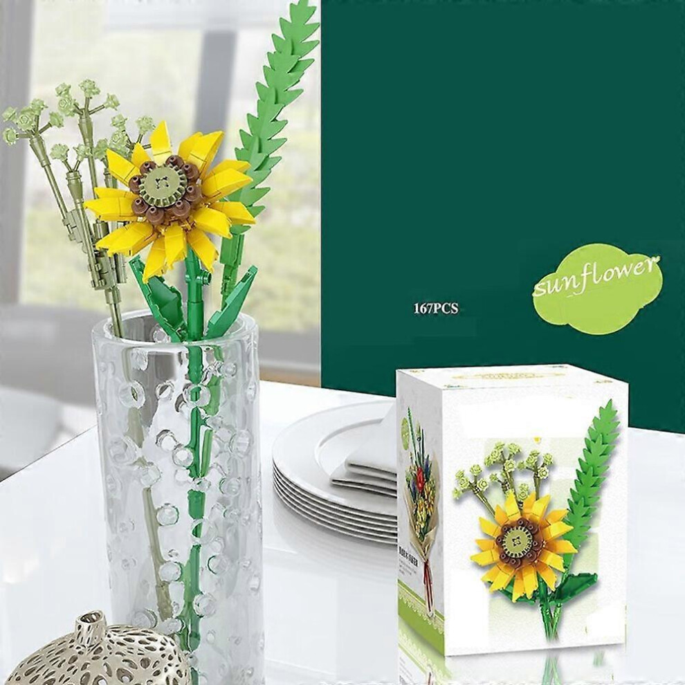 (As show, One size) 167 Particles (Sunflower) Lego The Orchid Plants with Artificial Flowers for Home Decor, Adult Crafts, Botanical Collection, Mothe