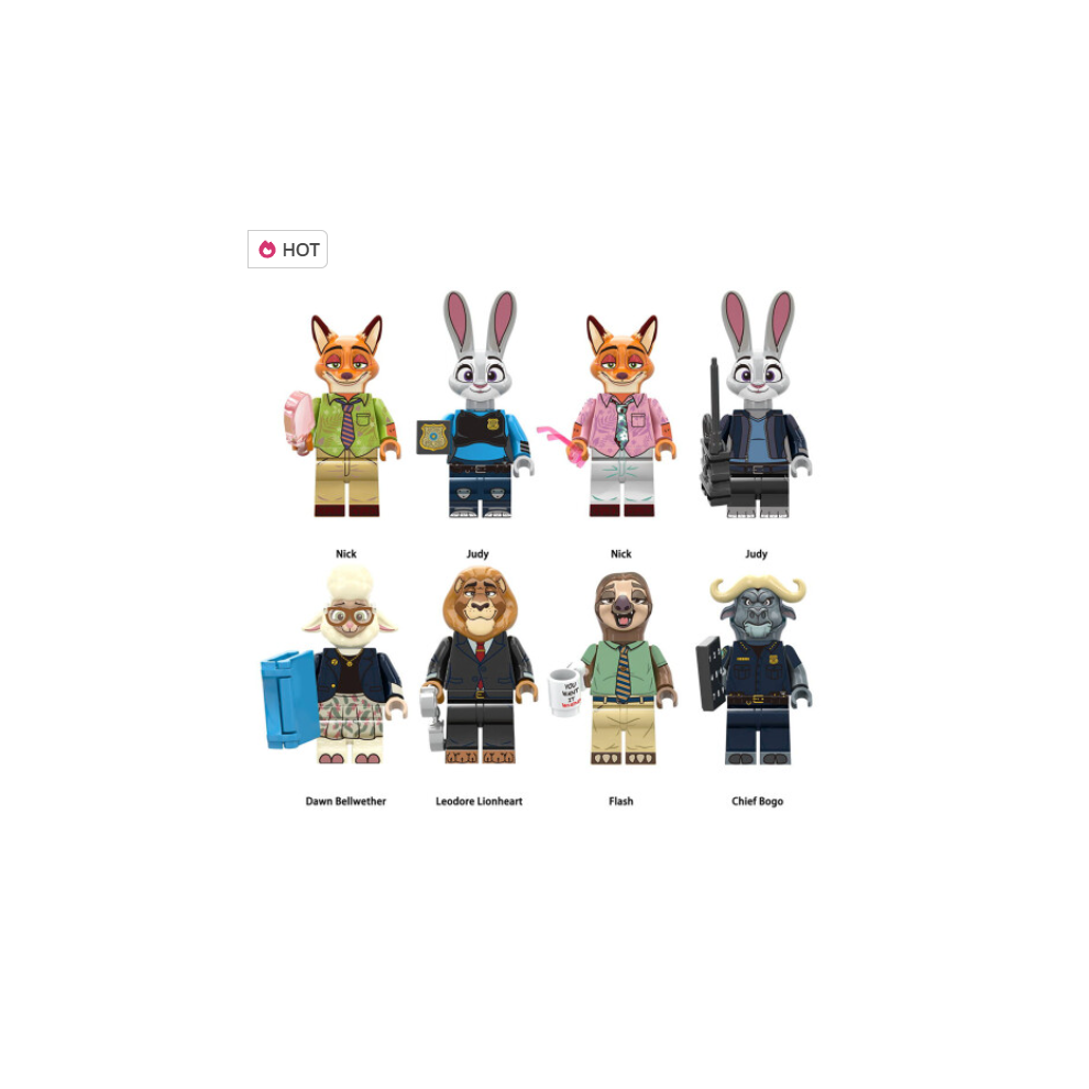 8PCS Zootopia/Zootropolis Nick Rabbit Bunny Wilde Fox Leodore Lionheart Fit LEGO Minifigures Blocks Kit