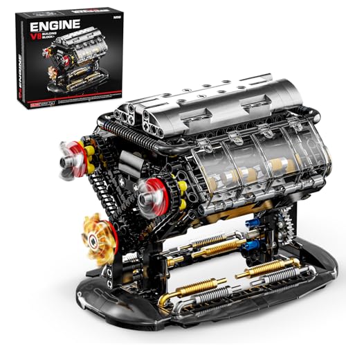 BseSparklion V8 Engine Building Blocks Sets, Mini V8 Engine Model Kit That Runs with Manual Joystick, Compatible with Lego Adults, STEM Physical Science Experiment Toy for Teens Boys 14+ (502 PCS)