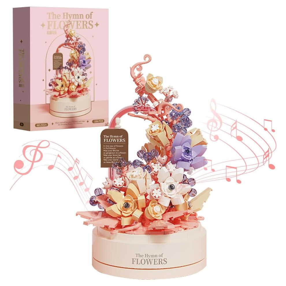 Floral Music Box Base Flower Building Sets with LED for Adults Girls Compatible with Lego