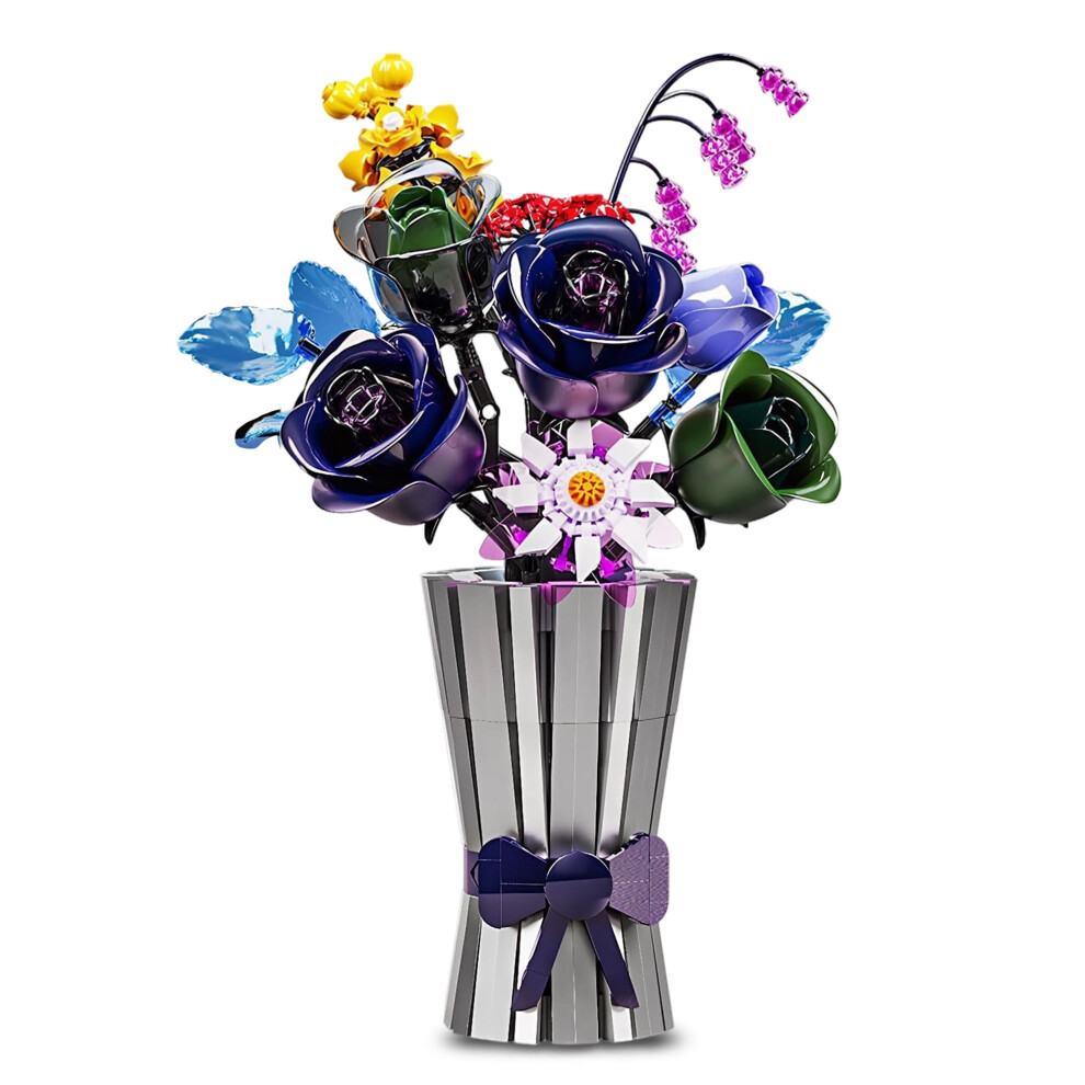 Rose Bouquet Building Sets Compatible with Lego Flowers Purple Botanical Decor for Adults 14+ 724PCS
