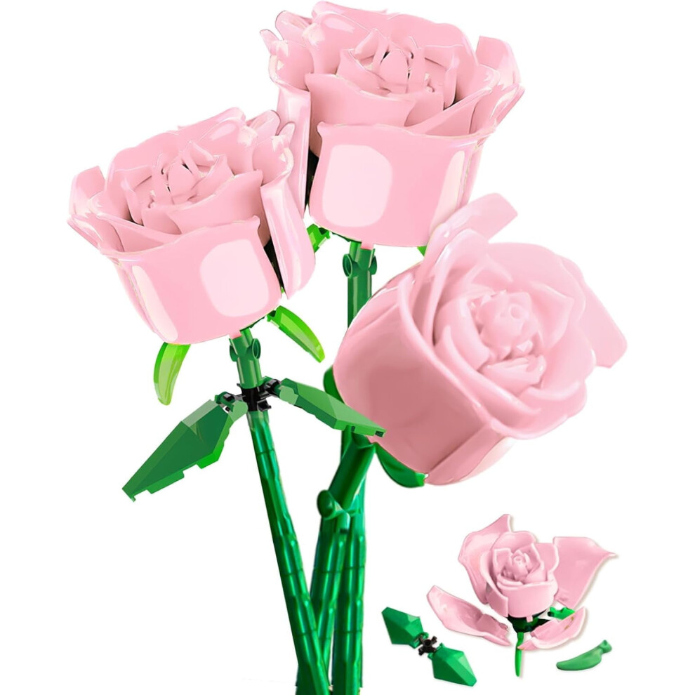 Rose Flowers Bouquet Building Sets for Adults Girls Compatible with Lego(Pink)