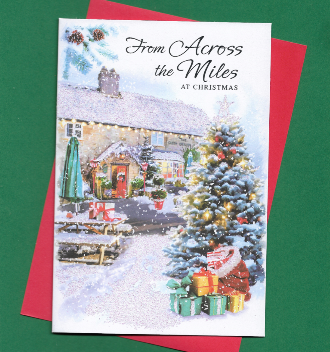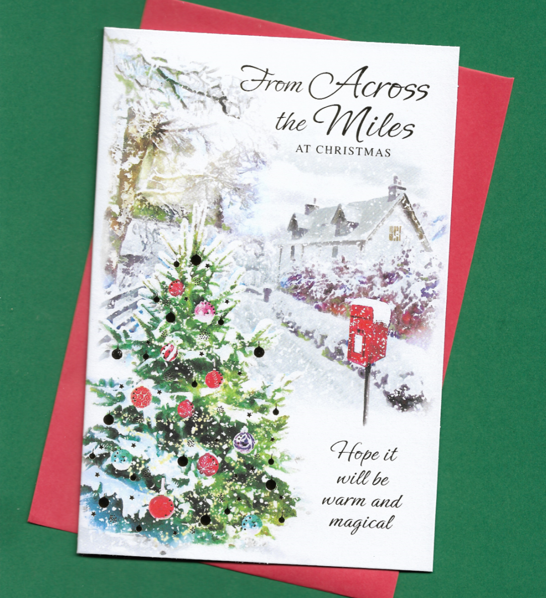 From Across The Miles Christmas Card Snow Scene Cottage Friend Family 19x13cm