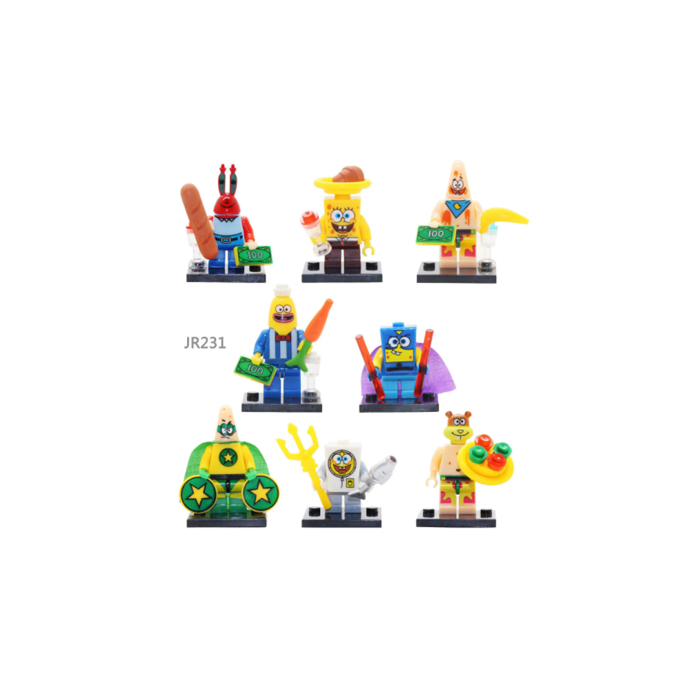 9PCS SpongeBob Minifigures DIY Building Blocks Kit - Compatible with Lego, Non-Toxic ABS, Kids Toys & Gifts
