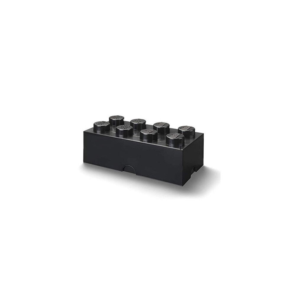LEGO Storage Brick 8 Knobs BLACK - Stackable Plastic Storage Box with Lid for Kids and Adults, Ideal Desk Organizer and Toy Box - 12.1L Capacity