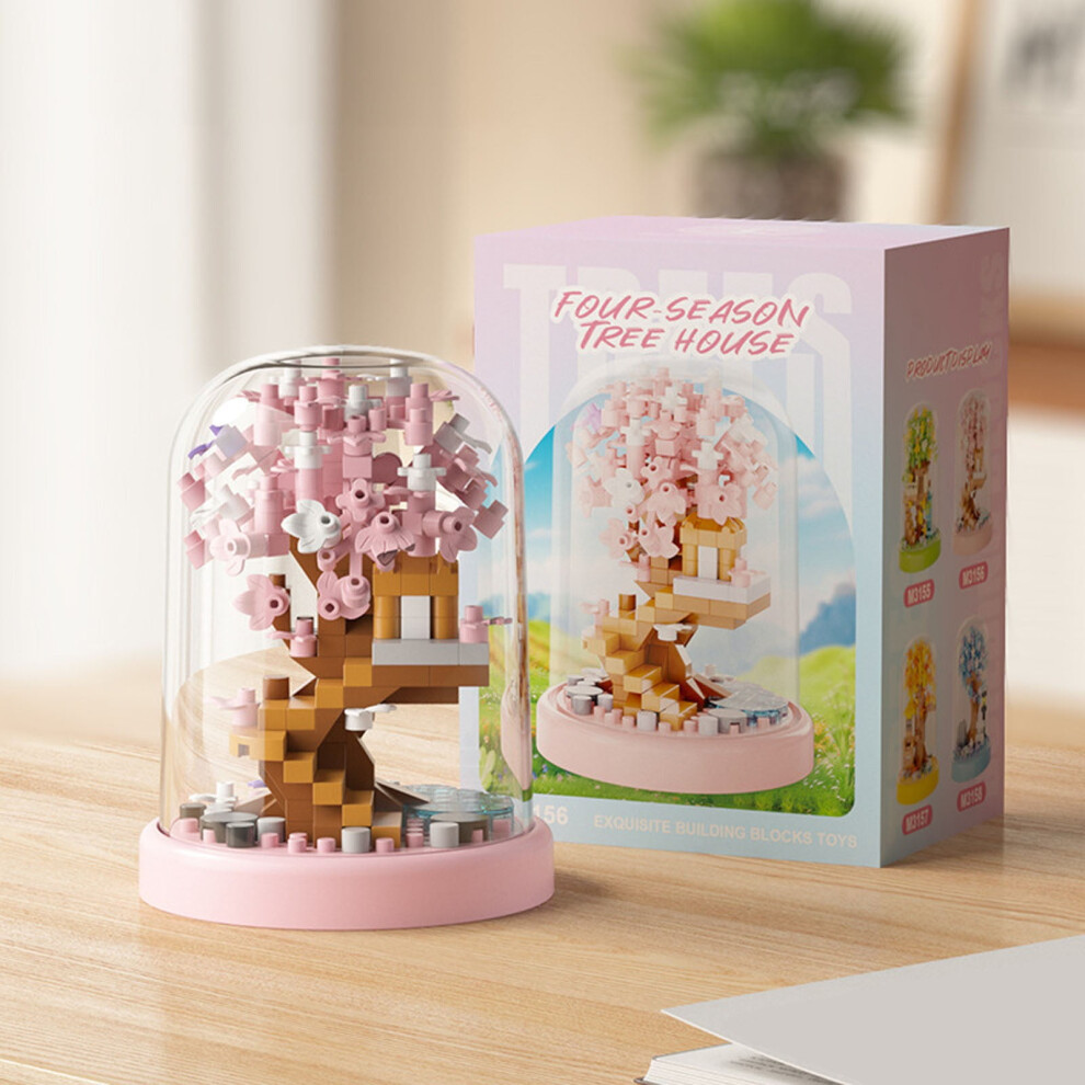 Valentine's Day 4-Season Tree House Bonsai Building Toy Set with Dust Cover, DIY Flower & Miniature Tree House Blocks – Compatible with LEGO