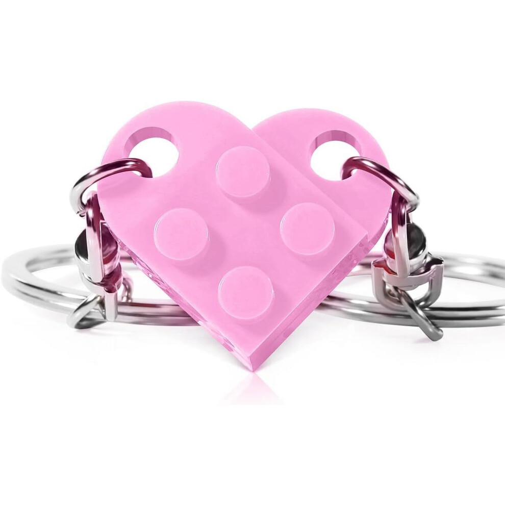 Matching Couple Heart Keychain for Boyfriend Girlfriend Valentine's Day Gifts Stuff Him Friends Set Compatible with Lego Gift