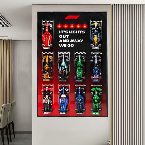 Display Wallboard for Lego 77242-77251 F1 Series Racing Car - Wall Mount Display Stand Art Wall Mount Frame for Racing Car Building Set - 50 x 80 CM (USB LED Light A)