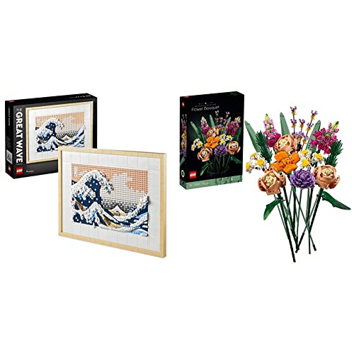 LEGO 31208 Art Hokusai – The Great Wave, 3D Japanese Wall Art Craft Kit & 10280 Icons Flower Bouquet, Artificial Flowers