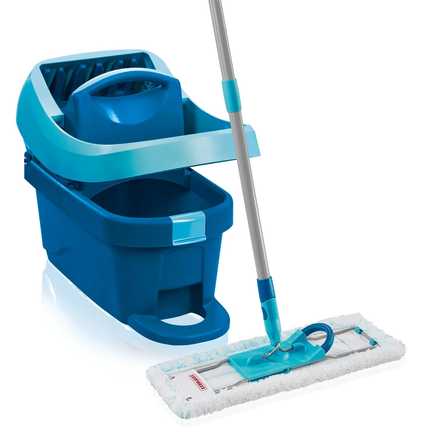 Leifheit Profi XL Mop and Bucket Set, Deluxe 42 cm Large Floor Mop, Easy-Steer Micro Fibre Mop Head and Profi Wringer Bucket with Rollers, Turquoise