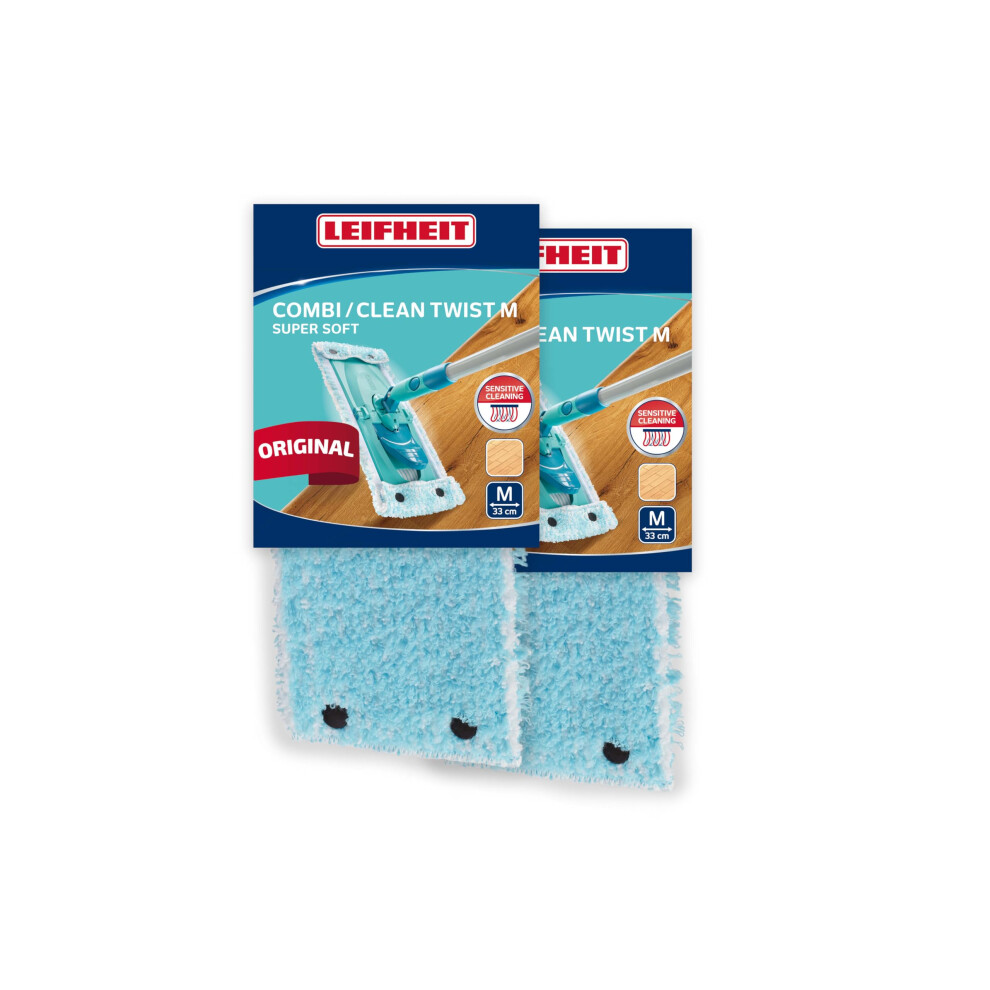 Leifheit Replacement CLEAN TWIST M Super Soft Mop, 2 x Replacement Mop Head, Wood Floor Cleaning Cover for Floor Mop, 33 cm wide, 2 piece set