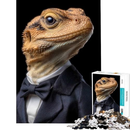 Jigsaw Puzzle 1000 Lizard in A Suit Leisure Brain Focus Game Tight Connection No Gaps at All Ideal Leisure Play for Relaxing Time (75x50cm)