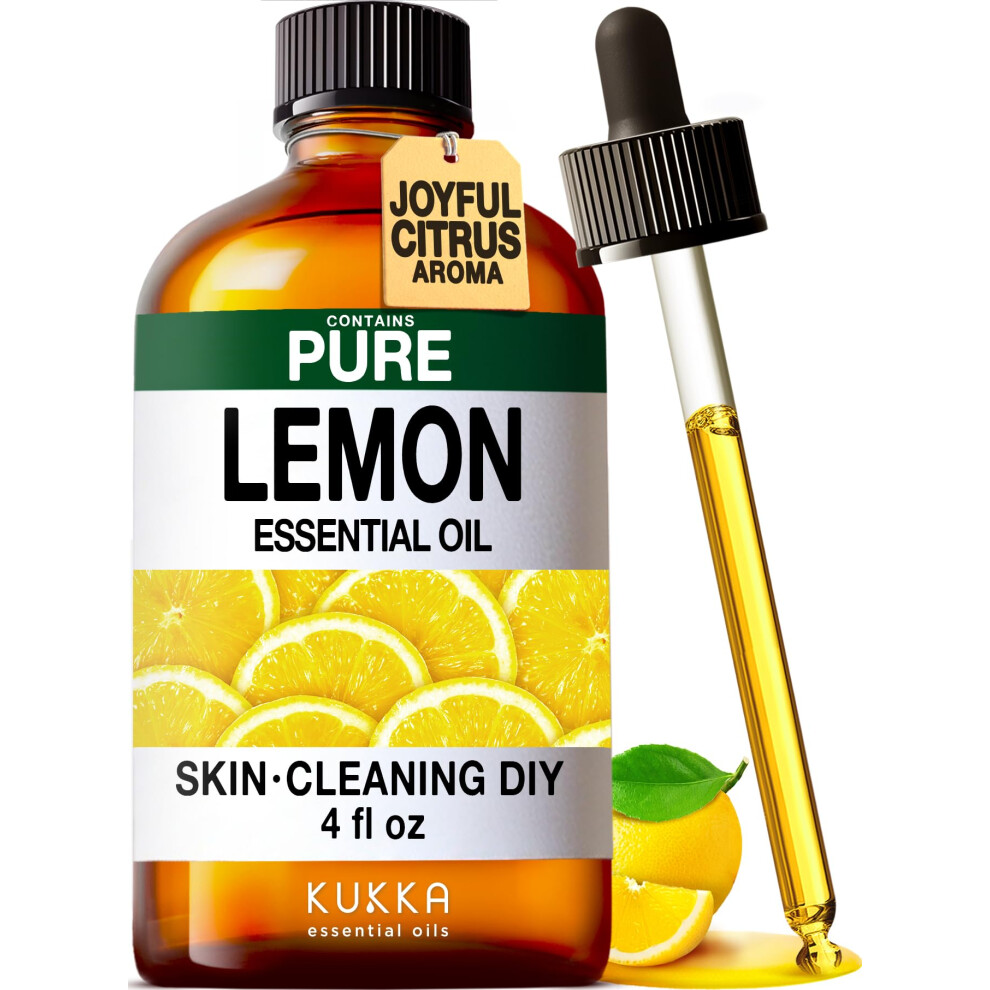 Kukka Lemon Essential Oil for Skin Cleaning - 118ml - 100% Pure Natural, Fresh Lemon Scent, for Diffuser, Aromatherapy, Soap Making Scent & DIY