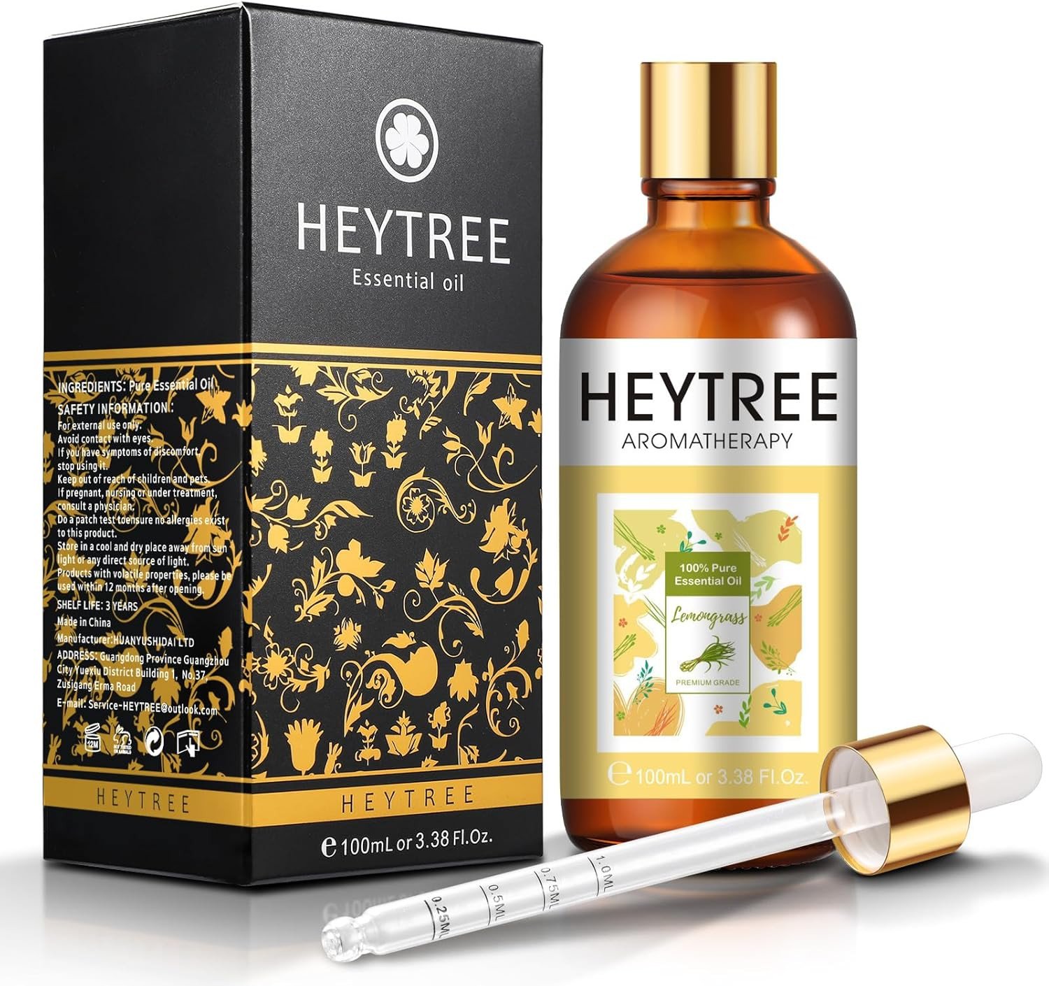 HEYTREE Lemongrass Essential Oil 100ml - Pure Natural Essential Oil for SPA Aromatherapy and Diffusers - Create a Relaxing Environment-Drive Buzzing Beasties