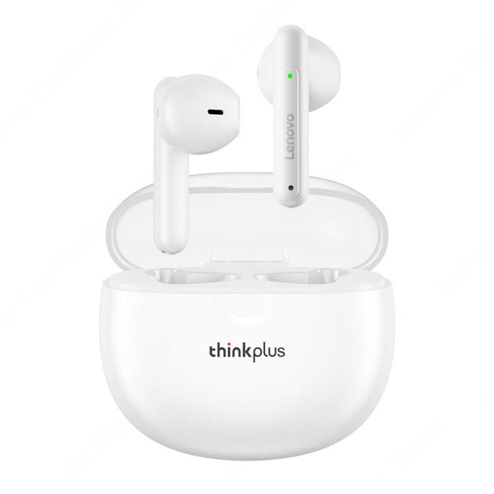 (White) Lenovo Bluetooth-Compatible Earbuds Rechargeable Hands-Free Earphones