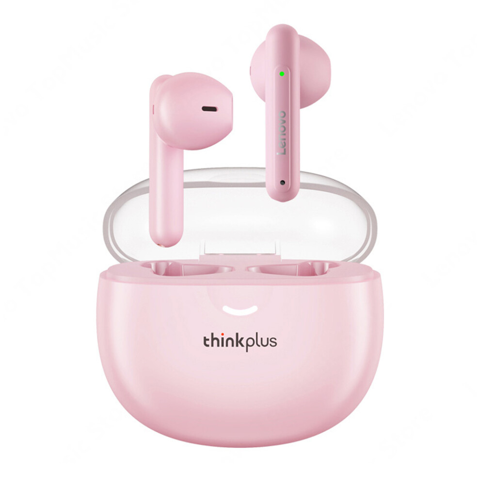 (Pink) Lenovo Bluetooth-Compatible Earbuds Noise-Canceling Earphones Supplies