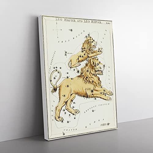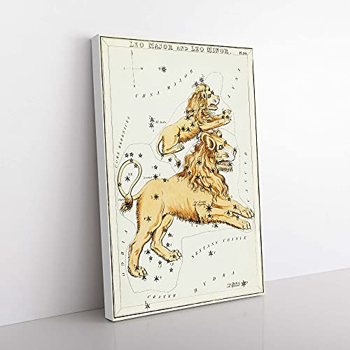 Astronomical Zodiac Chart Of The Leo Constellation Vintage Canvas Wall Art Print Ready to Hang, Framed Picture for Living Room Bedroom Home Office Décor, 20x14 Inch (50x35 cm)