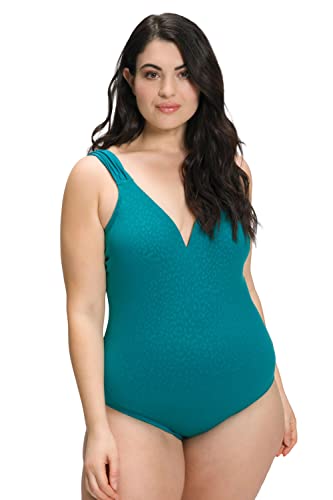Ulla Popken Women's Swimsuit, Leo-Jacquard, Soft Cups, deep Back, Blue, 20