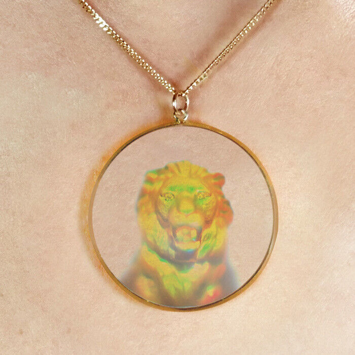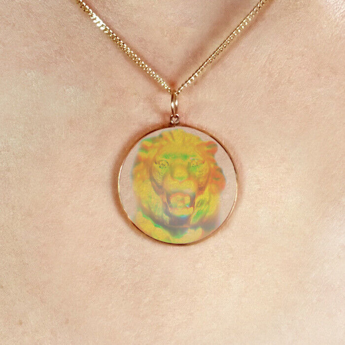 9ct Gold Hologram Pendant - Zodiac Leo Lion (Large) + 20" Chain
