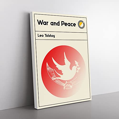 Book Cover War And Peace Leo Tolstoy Modern Canvas Wall Art Print Ready to Hang, Framed Picture for Living Room Bedroom Home Office Décor, 76x50 cm (30x20 Inch)