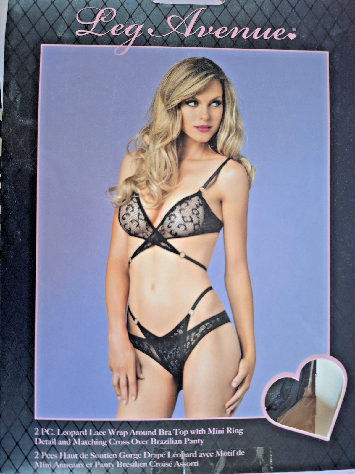 Strappy Bra Set Sexy Black Lace Size 8 10 Sheer Knickers Leopard Print Lingerie