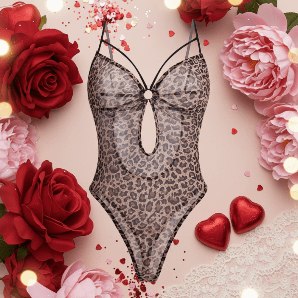 YZCIS Outfit Women Lingerie Set Lingerie, Lingerie, Leopard-print Bodysuit, Female Sling V-neck Hollow Lace Pajamas