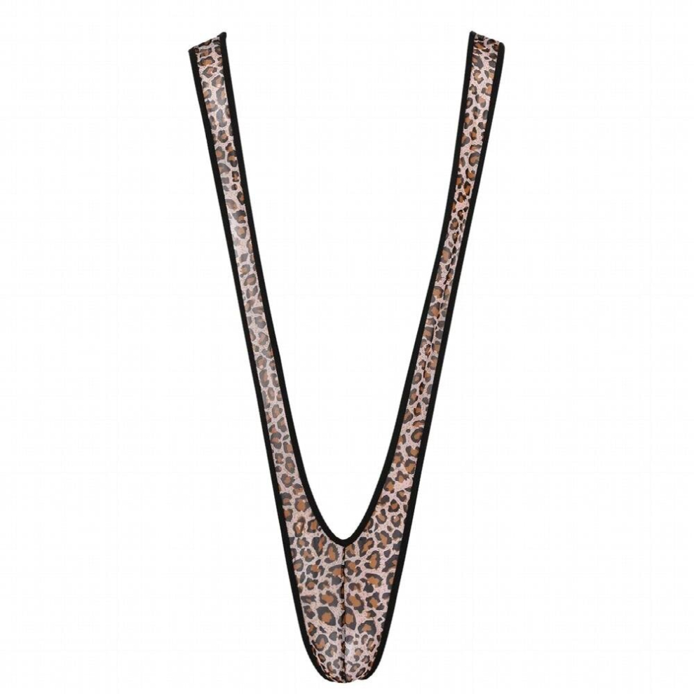 Male Mens Leopard Print One-piece Stretch Deep V-shaped Mankini Thong Underwear Lingerie Suspender Bodysuit Swimsuits