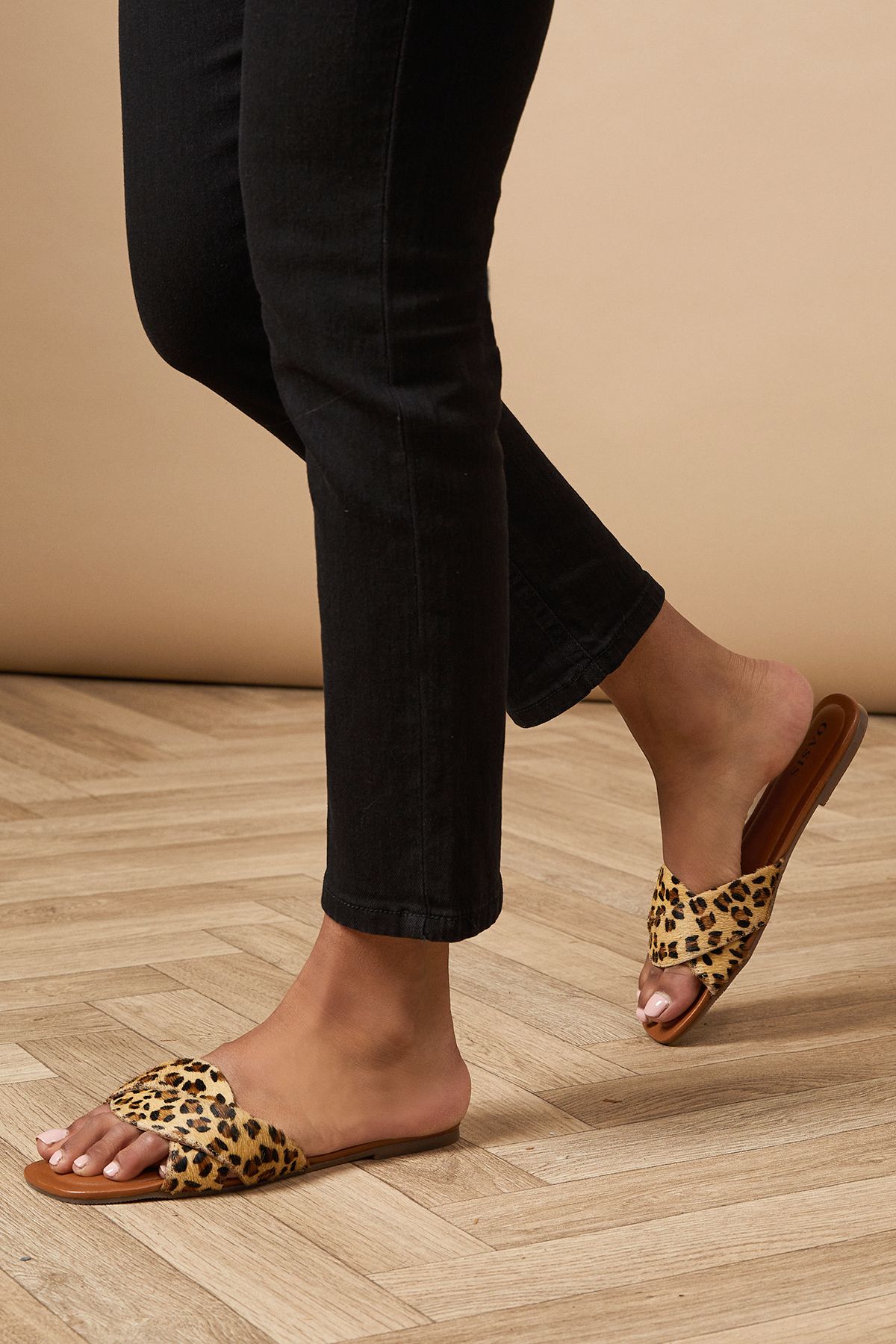 Oasis Womens Fable Leather Leopard Print Twist Front Mules - Size UK 3