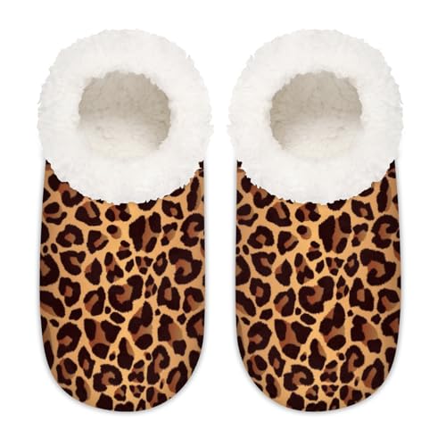 Animal Leopard Pattern Slippers for Men Women, Leopard Print Womens House Slippers Indoor Slipper Socks House Shoes Bedroom Travel Shoe Use