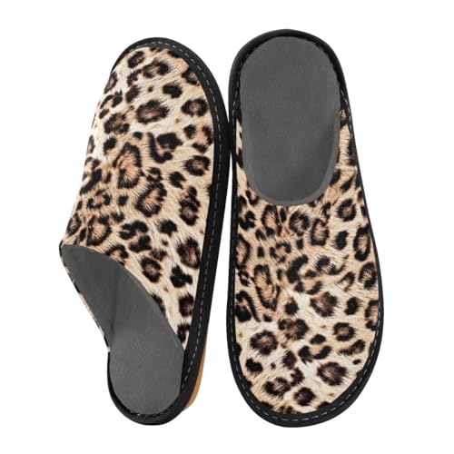 Mexpekil Animal Print House Slippers for Women Men, Leopard Print Memory Foam House Shoes Comfy Anti-Slip Slipper Socks for Indoor Bedroom, Sizes 5-6