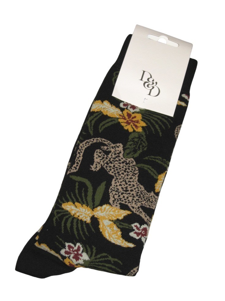 DESMOND & DEMPSEY Soleia Leopard Jungle Print Socks Black Size 9 - 10