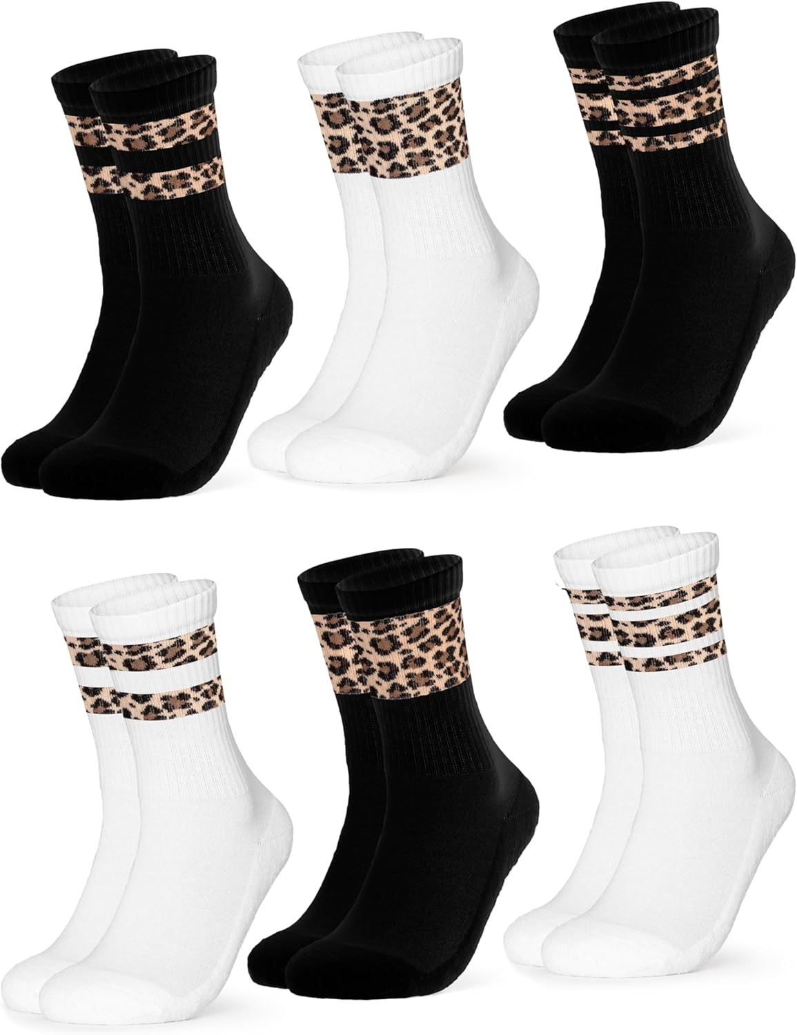 Occulto women leopard print crew socks pack of 6 (model: Nala) black white 3-5