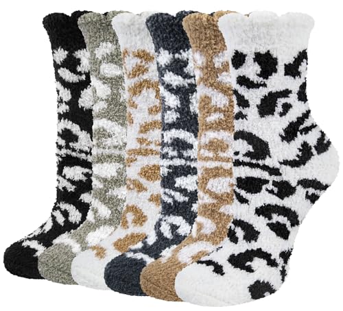 Radsocken 6Pairs Womens Fluffy Socks Winter Warm Thick Soft Fuzzy Socks,Leopard Print Socks Coral Fleece Floor Socks Cosy Bed Sock Birthday gifts for Ladies and Girls