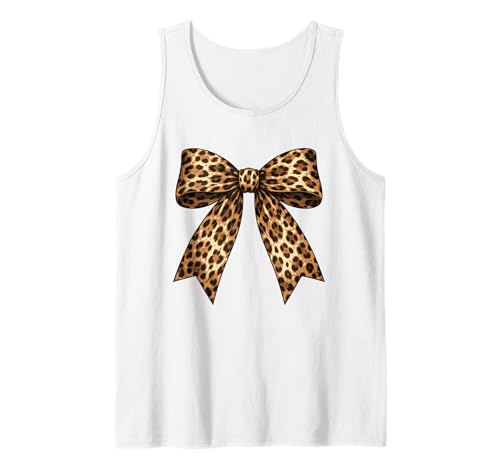Leopard Print Bow Cute Animal Pattern Womens Summer Time Tank Top