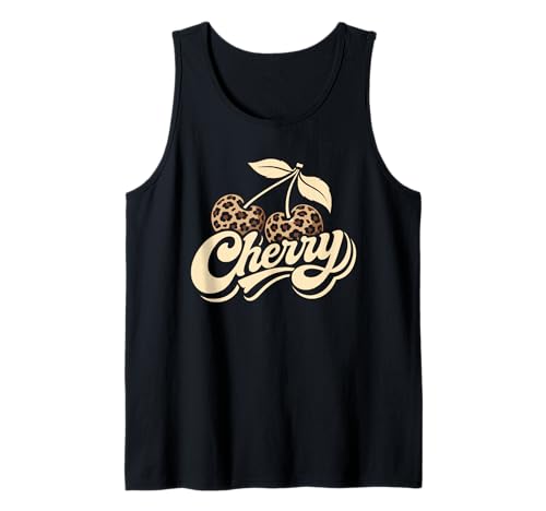 Cherry Leopard Print Retro Script y2k Style Tank Top